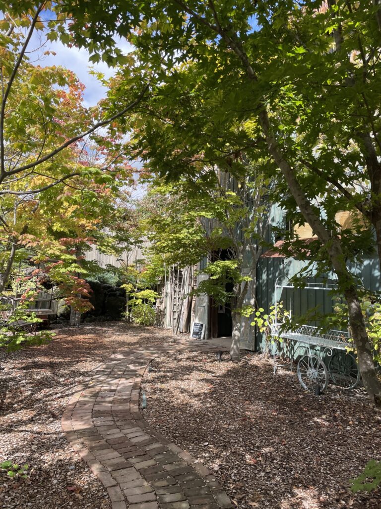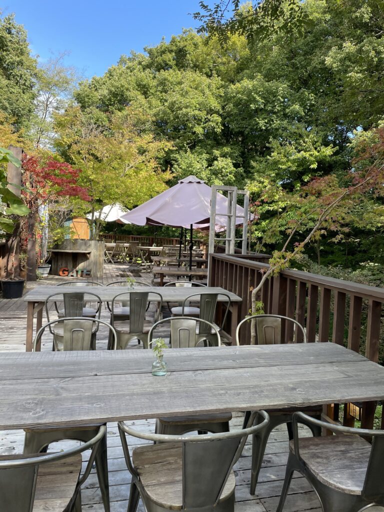 軽井沢の中心部からは車で20-30分ほど離れていますが、その分、人混みが少し落ち着いていて、とても雰囲気の良いテラス席でオシャレなヴィーガン(動物性原材料不使用の)カフェメニューを楽しむことができます。