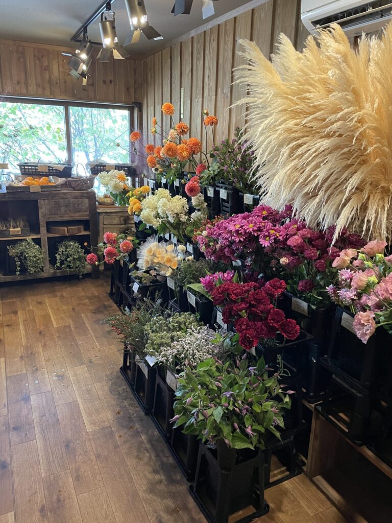 GAFLO Caféは、主要道国道18号線沿いに位置しているお花屋さんを主体とした複合店舗「GATE FLOWER FIELD(ゲートフラワーフィールド)」の敷地内にあります。軽井沢エリアでお花やガーデニングのお店を複数店舗構えている「FLOWER FIELD」さんが運営する店舗で、この場所にはカフェの他にレストランやウェディングの設備なども整っています。